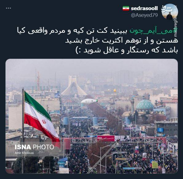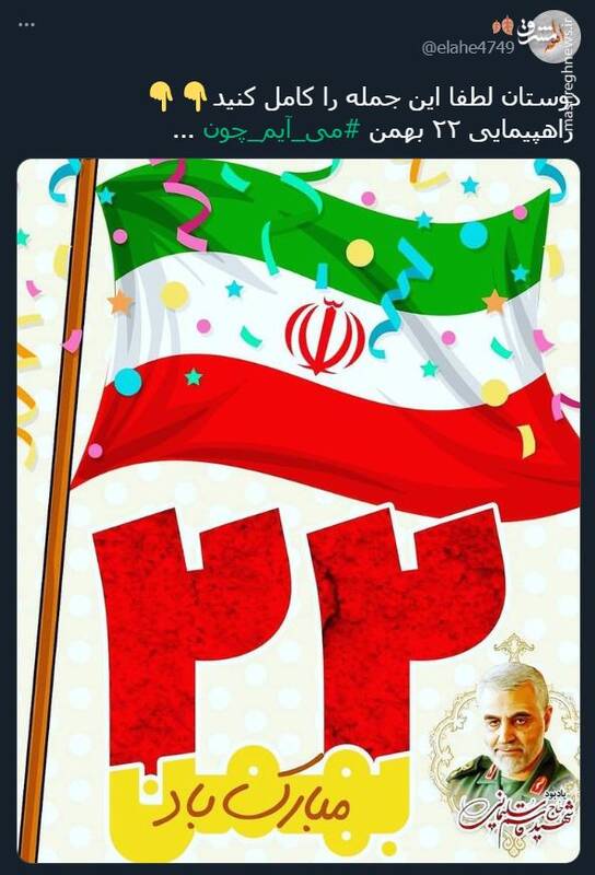 به گزارش سرویس سیاسی رادکانا؛ کاربران توئیتری در فضای مجازی هشتگ «من می آیم چون... » را در توئیتر راه اندازی کردند. این کاربران دلایل حضور خود در راهپیمایی ۲۲ بهمن را در ادامه این هشتگ درج نمودند.